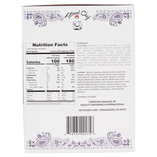 45+ Tattooed Chef Acai Bowl Costco Images. Tattooed chef organic açai bowls contain only the finest organic ingredients (açai berries, strawberries, blueberries and bananas). Organic açai puree (organic açai, filtered water, citric acid), organic bananas, organic strawberries, organic.